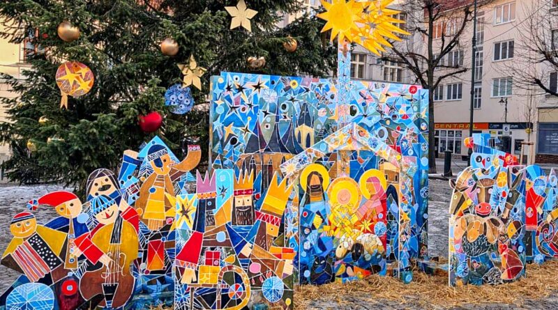 Jeden betlém je klidná klasika, druhý neobvyklá barevná mozaika. Oba už zdobí náměstí a čekají na rozsvícení stromů