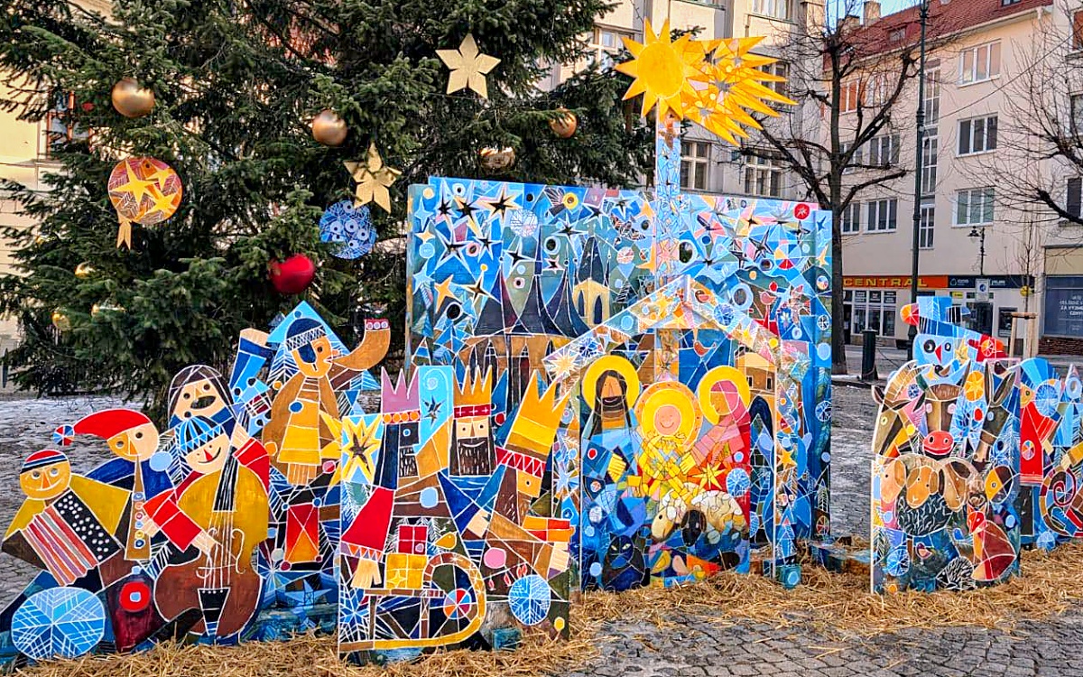 Jeden betlém je klidná klasika, druhý neobvyklá barevná mozaika. Oba už zdobí náměstí a čekají na rozsvícení stromů