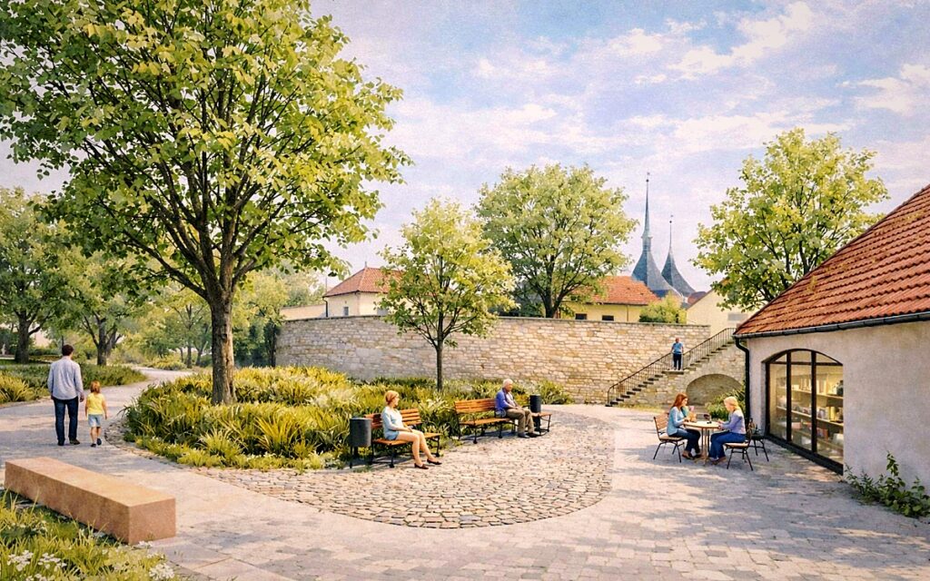 U cest mezi domy kromě mnoha laviček, fontánky bude vysazeno i několik nových stromů. „Myslím, že to bude parádní nový prostor. Navržený a udělaný tak, aby sloužil především lidem, aby to bylo pro ně příjemné místo. Chceme postupně proměňovat Louny v moderní město,“ dodal starosta.