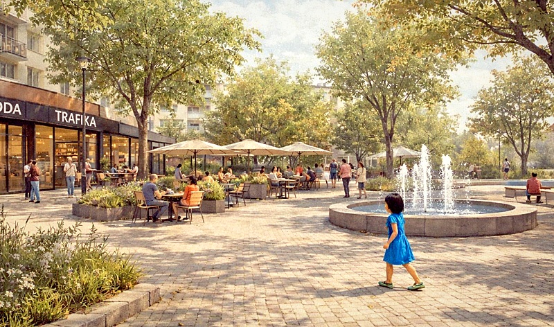 Lavičky, stromy, kavárny, jezírko. Nová podoba Suzdalského náměstí vypadá moderně a zajímavě
