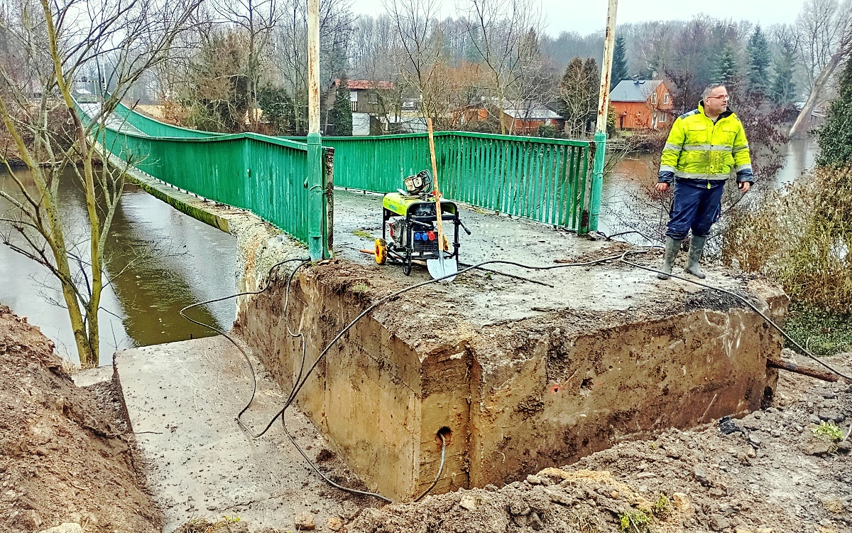 Lávka je uzavřena, oprava začala. Most má odkopané betonové patky