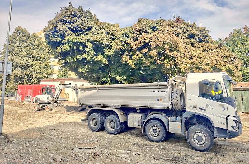 Louny – Ulice jen s hlínou a štěrkem a bez povrchu, obrubníky zatím bez chodníků kolem domů, kovové zábrany a jezdící nákladní vozy a stavební stroje – tak vypadá v současnosti situace na velké ploše na sídlišti ČSA v Lounech. Práce se rozjely během prázdnin a soustřeďují se do oblasti kolem ulic J. Schovánka a K. Aksamita.