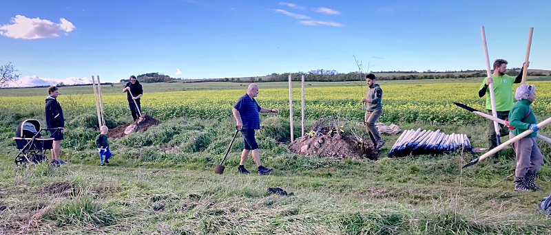 Hrušně vysázeli členové spolku a mnoho dalších dobrovolných pomocníků na konci října v roce 2022. „Tehdy to bylo 80 kusů hrušní. Přivázali jsme je k opěrným kůlům, namontovali i pletivo proti přístupu zvěře, aby nemohla mladé stromky okusovat. O stromy teď průběžně pečujeme,“ uvedl Petr Menzl. Péče je velmi důležitá zejména například při úmorných letních vedrech, spojených s dlouhým suchem. Když tyto „tropy“ udeří, je nutné mladé stromky několikrát týdně zavlažovat, jinak by uschly.
