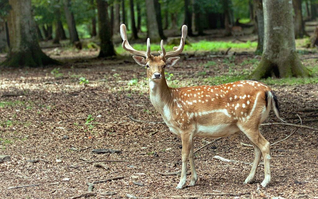 (na snímku nahoře: daněk – ilustrační foto. Dole jsou hasiči z Vroutku a Podbořan při zásahu v lese, březnové pomoci daňkovi, nedaleko Vroutku. Foto pixabay.com a SDH Vroutek)