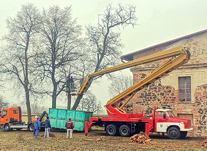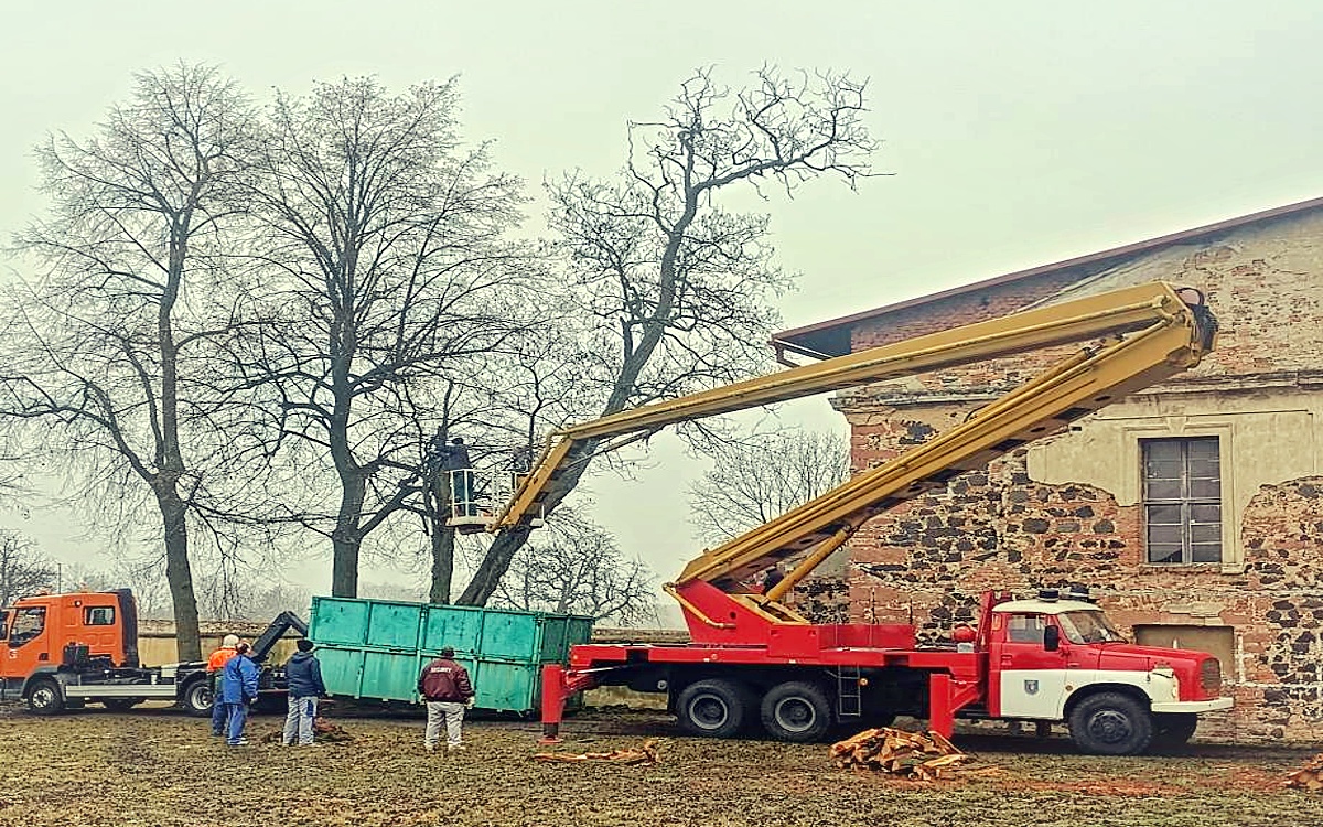 Krásný Dvůr – Tři staré akáty byly už vyšší než některé z budov zámku. Zejména ale byly již ve špatném zdravotním stavu, s vyhnilými částmi uvnitř kmenů a větví, mohl hrozit pád a nebezpečí pro návštěvníky. Proto musely narušené dřeviny ze zámecké zahrady pryč. Zásah v zahradě u zámku v Krásném Dvoře proběhl na přelomu února a března, výrazně při něm pomohli hasiči z obce a jejich technika.
