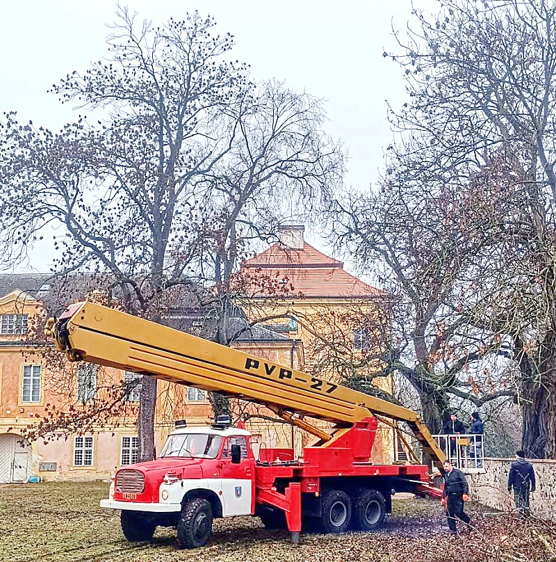 „Stromy bylo nutné ze zámecké zahrady odstranit kvůli havarijnímu stavu. Tyto tři akáty byly nebezpečné, napadené, uvnitř duté a vyhnilé. Jejich pokácení jsme svěřili odborníkům – chlapům ze sboru dobrovolných hasičů v Krásném Dvoře. Byli milí a ochotní, byla s nimi perfektní spolupráce, patří jim naše velké poděkování,“ uvedl Milan Vaněrka, kastelán Státního zámku Krásný Dvůr.