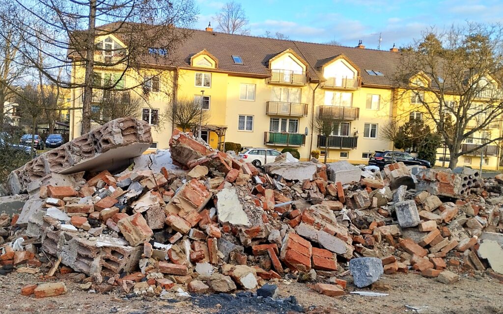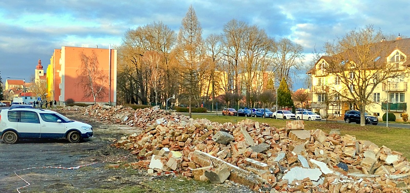 Podbořany – Kde byly dříve dlouhé roky desítky řadových garáží, tam je teď jen velká hromada stavební suti. V Podbořanech na jihovýchodním okraji města v oblasti ulice Palackého a pod parkem na kopci s názvem Schillerovy sady přijely ke konci ledna „do akce“ těžké stavební stroje a pustily se do práce. Zbouraly přibližně dvacet původních garáží a na volné ploše místo nich nyní bude v letošním roce vyrůstat nový bytový dům.