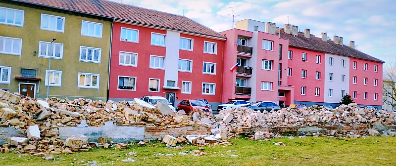 Z garáží zbyla jen hromada sutin. Na okraji Podbořan se teď bude stavět nový dům se třiceti byty