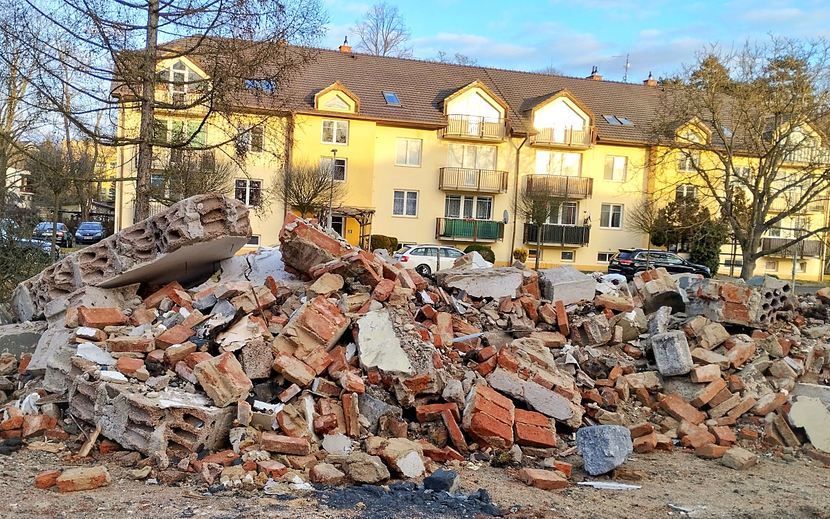 Z garáží zbyla jen hromada sutin. Na okraji Podbořan se teď bude stavět nový dům se třiceti byty