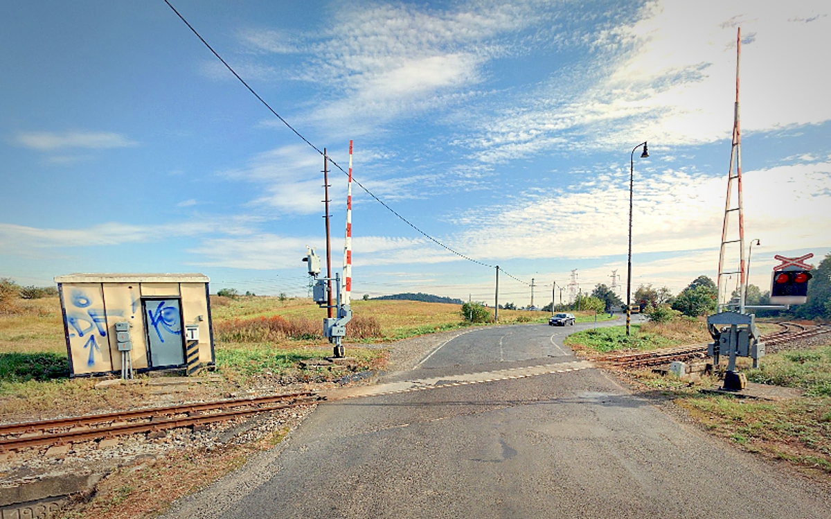(na snímku nahoře: přejezd na silnici z Postoloprt do Loun za osadou Březno. Zůstane průjezdný, ale vypnuto bude zabezpečovací zařízení. Řidiči musí být opatrní. Foto Mapy.com)