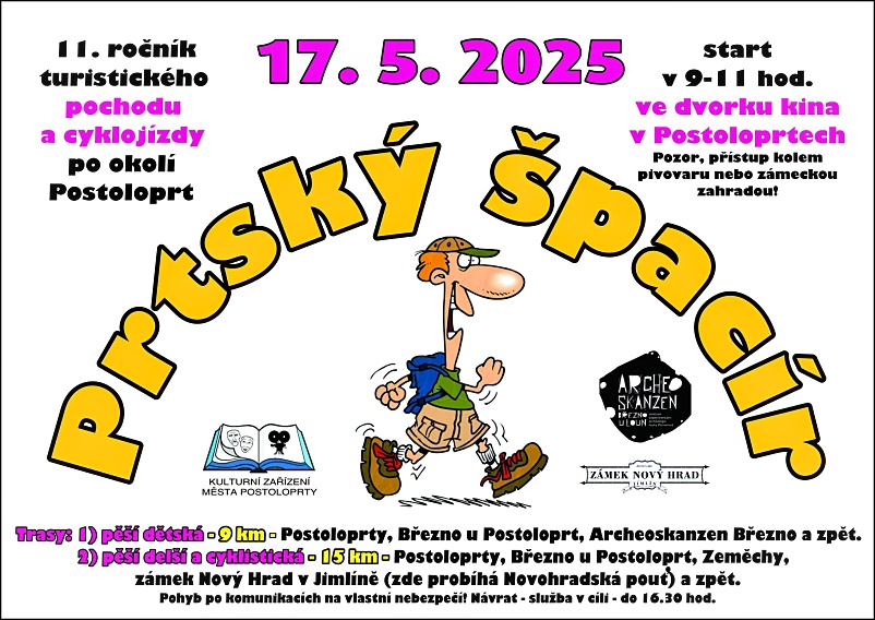Postoloprty – Nadcházející víkend v našem regionu bude patřit sice hlavně hudebním festivalům (Podbořany a Žatec) nebo také zámeckým poutím (Jimlín), nicméně kdo má rád trochu toho lehkého zdravého pohybu, například ve formě pěší turistiky nebo jízdy na kole, i pro toho se dobrá aktivita najde. V Postoloprtech v sobotu (17.5.) startuje oblíbená akce Prtský špacír, nabízející jak možnost pochodu jarní přírodou, tak i cyklojízdu. Start je od 9 do 11 hodin tradičně od prostoru kina a knihovny, akce bude mít letos už 11. ročník.