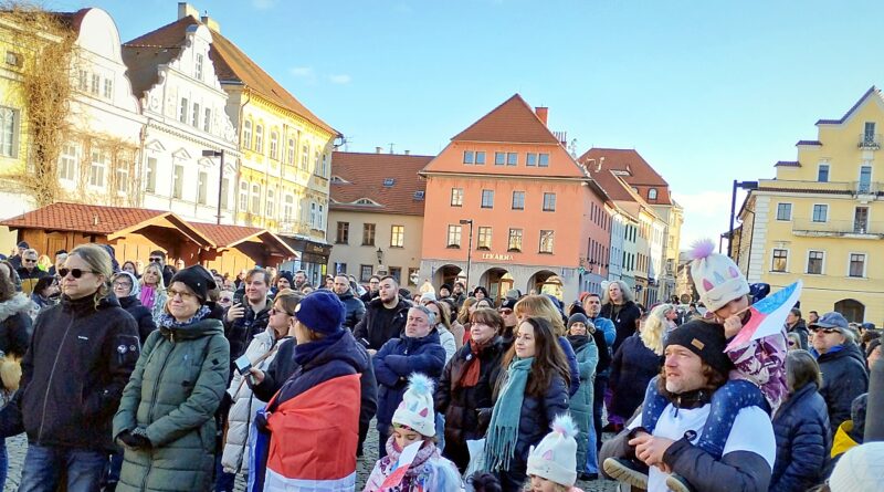Louny – V podobném počtu jako předtím odpoledne v Žatci se sešli lidé v neděli vpodvečer (15.2.) také na náměstí v Lounech. V obou městech
