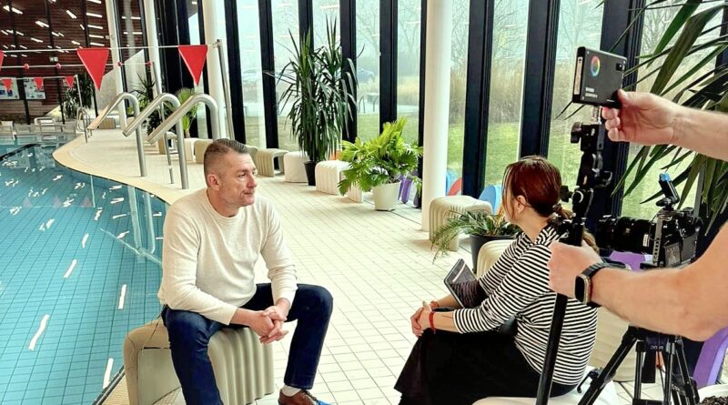 Filmaři natáčeli v moderním bazénu v Lounech. Plavecká hala bude součástí seriálu Příběhy staveb