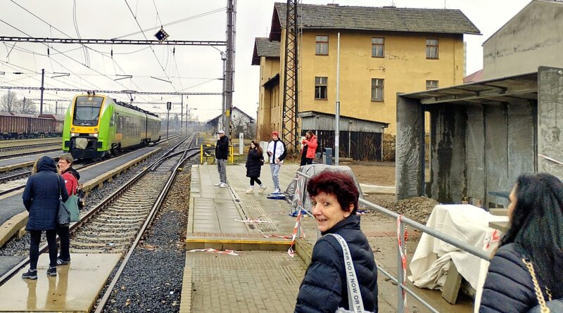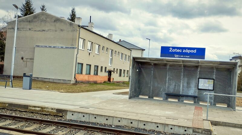 Žatec – Nový „přístřešek“ s čekárnou pro cestující, vzniklý na místě po bývalé rozlehlé budově železničního nádraží Žatec západ, je