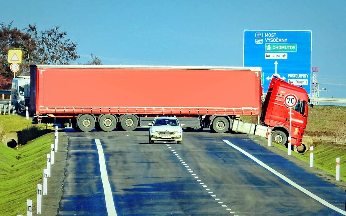 Drobnější havárie červeného kamionu se odehrála ve středu (10.12.), celý nový obchvat Žiželic i s novým mohutným silničním mostem se pro řidiče otevře již nyní v pondělí (15.12.). Celá stavba v terénu i s vrty a dalšími přípravami trvala více než tři roky, dlouhé objížďky pro nejtěžší vozy nákladní dopravy (se zajížďkou až kolem 80 km, pozn. red.) musí jejich šoféři dodržovat už rok a půl, trasa přes Žiželice je zavřená od května 2024. Čas od času se stává, že to některý z řidičů stejně „zkusí“ a buď omylem, nebo možná i s určitou „nadějí“ vjede do uzavřeného prostoru stavby, ale pak má nemalé problémy – středeční kolize červeného kamionu nebyla nějakou zvláštní či ojedinělou výjimkou.