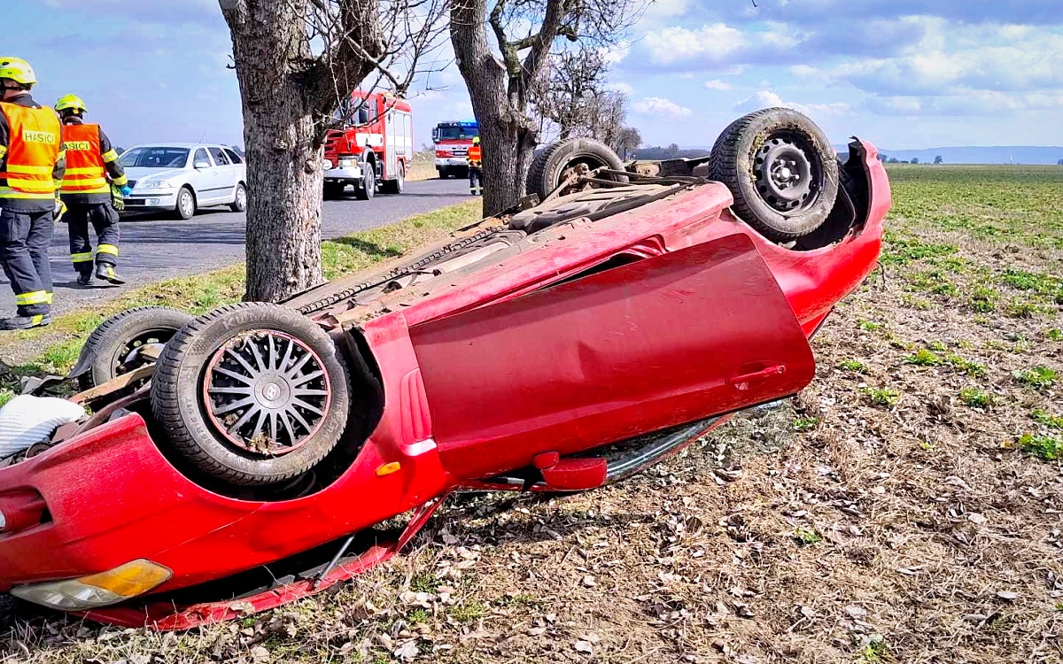 Auto Hyundai havarovalo na silnici mezi Čeradicemi a Větrušicemi v rovinatých polích poblíž vojenské základny. Ve vysoké rychlosti vyletělo ze silnice a na poli se převrátilo na střechu. „Nehoda se udála ve středu kolem poledne u Čeradic, na místo vyjeli hasiči. Jeden z cestujících utrpěl jen lehčí zranění, jinak byla posádka naštěstí v pořádku. Hasiči zajistili vůz proti úniku kapalin a možnému vzniku požáru a pak ho i pomohli postavit zpět na kola,“ popsala mluvčí HZS Ústeckého kraje Lucie Vyškrabková.