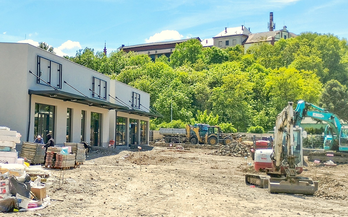 (na snímcích: stavba nového obchodního centra v Žatci, stav v květnu 2025. Pro zákazníky by mělo poprvé otevřít v červenci. Foto Libor Želinský)