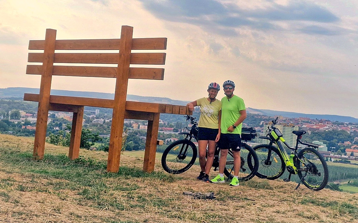 Obří lavička větší než člověk. Na okraji Žatce se teď střídají cyklisté i pěší výletníci
