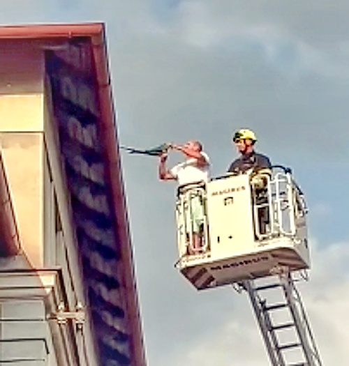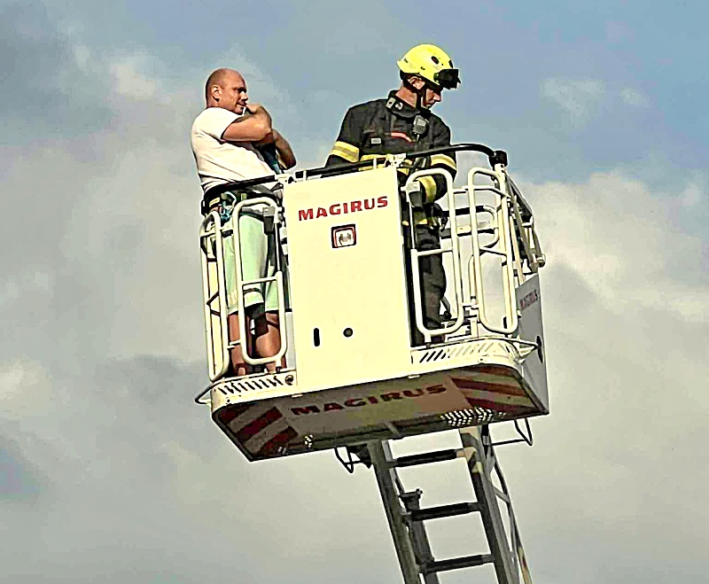 Žatec – Se záchranou papouška pomohli hasiči v Žatci. Exotický pták uletěl ve středu (20.8.) svému chovateli a usadil se v konstrukci na okraji střechy blízkého výškového domu. Bylo to v lokalitě poblíž hlavní budovy Chmelařství. Hasiči přijeli s výsuvnou plošinou, majitel se díky tomu dostal až do blízkosti papouška a ten s důvěrou a nezraněný přeskočil zpět ze střechy do jeho „náruče“.
