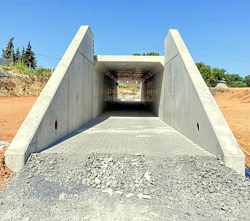 V Žiželicích kromě mostu, který je díky své mohutnosti nejvíce viditelný, finišuje i stavba dalších doprovodných prvků. Například se dokončuje nový podchod pro pěší, který bude sloužit hlavně obyvatelům obce. Díky němu se dostanou bezpečně „na druhou stranu“ za obchvat – buď například na procházky s rodinou nebo třeba se psem do přírody, anebo také na některé nově vybudované autobusové zastávky, které podle současných plánů budou umístěny podél hlavního silničního tahu. Některé autobusy například mezi Žatcem a Mostem, nebo i ze Žatce do Triangle, už nebudou zajíždět přímo do centra Žiželic, ale lidé z obce vystoupí na uvedené zastávce a potom „kousek dojdou“ právě podchodem. Stejně tak budou z obce i přicházet „na autobus“. Samotný podchod pod vozovkou bude dlouhý kolem 80 metrů, nyní ke konci června stavitelé uvnitř už položili zámkovou dlažbu.