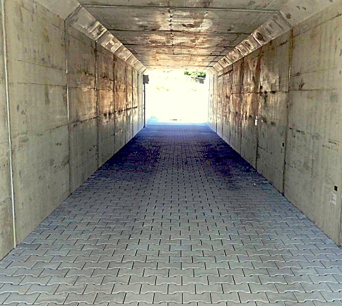 (na snímcích: u mostu v Žiželicích zbývá dokončit už jen opravdu malý „kousek“. Aktuálně je to méně než čtvrtina celkové délky. Dole je podchod pro pěší s nově položenou zámkovou dlažbou. Foto Petr Marek)